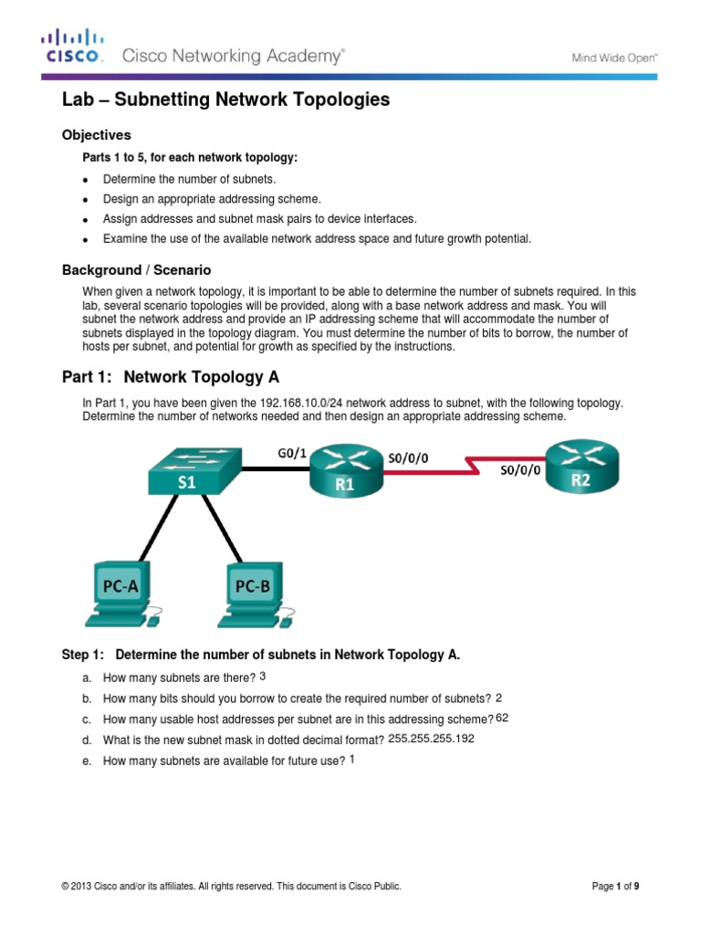 Appendix Lab Subnetting Network Topologies Answers Premium It