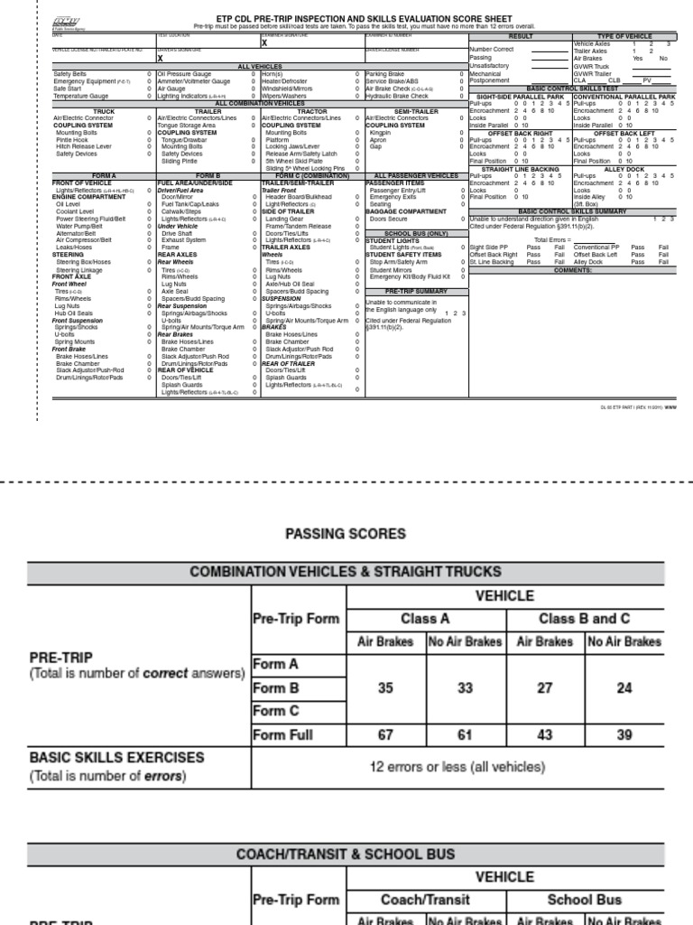 Cdl Class A W Air Pre Trip Inspection Checklist