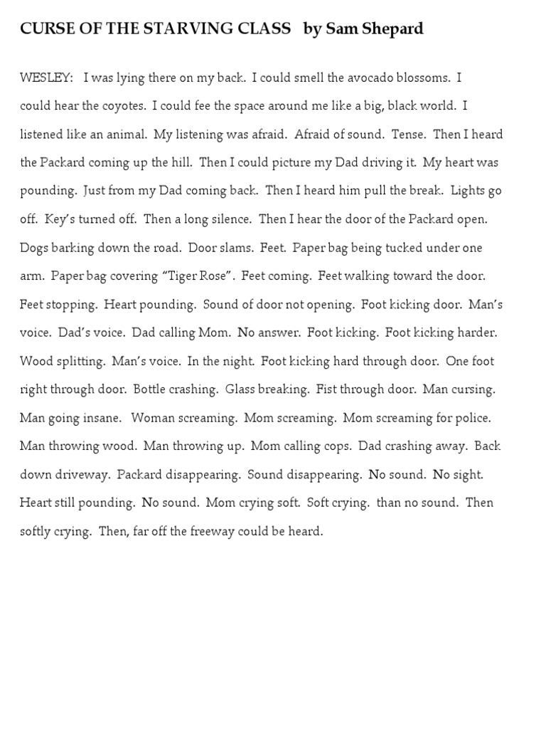 Pdf Domestic Violence In Sam Shepard S Curse Of The Starving Class