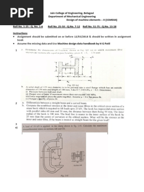 Design Of Machine Elements Previous Year Question For Vtu Pdf