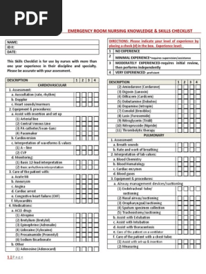 Operating Room Nursing Knowledge Skills Checklist Surgical