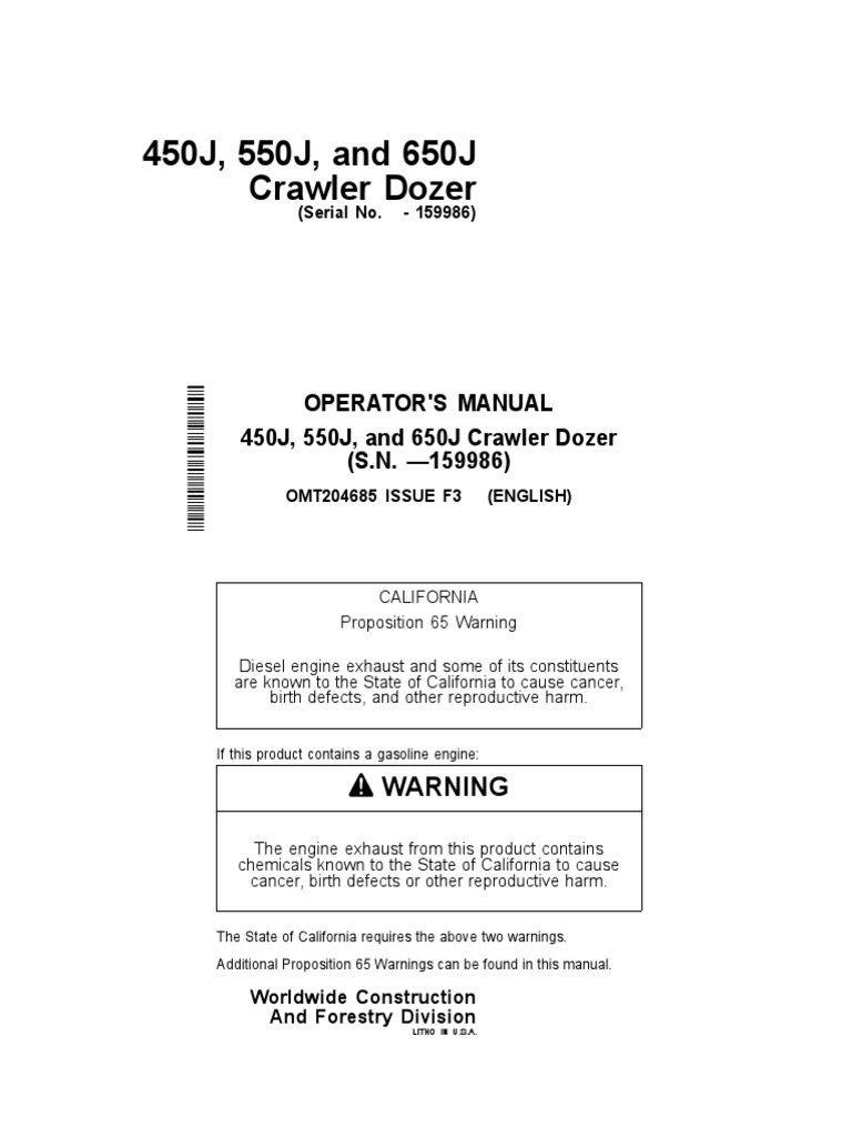 John Deere 450j 550j 650j Dozer Repair Manual Jd Tm10294 Book